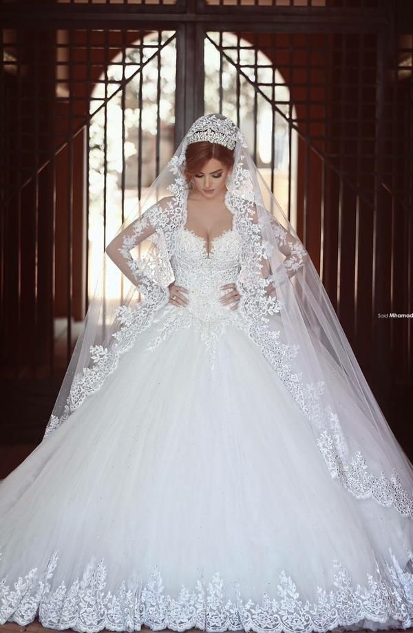 2016 Vintage Wedding Dresses Custom Made Long Sleeves Wedding Dress Ball Gown Sheer Neckline Beaded Appliques Cathedral With Free Veil From Andybridal 200 05 Dhgate Com